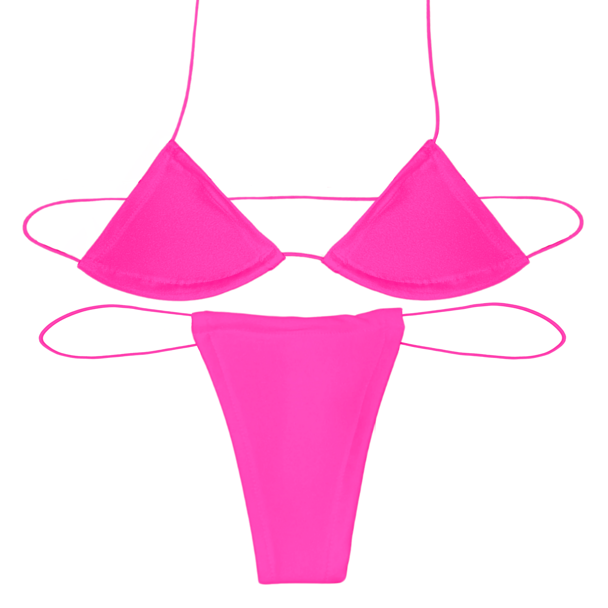 One Size. Lined bottoms. Extremely minimal coverage. Elastic cord straps are each approximately 26 inches and stretch to 55 inches. Fabric pieces are 3.75-4 inches at their widest.