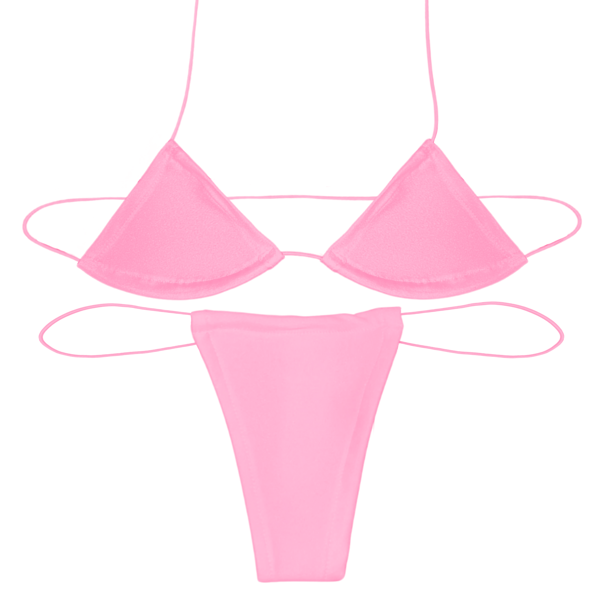 One Size. Lined bottoms. Extremely minimal coverage. Elastic cord straps are each approximately 26 inches and stretch to 55 inches. Fabric pieces are 3.75-4 inches at their widest.