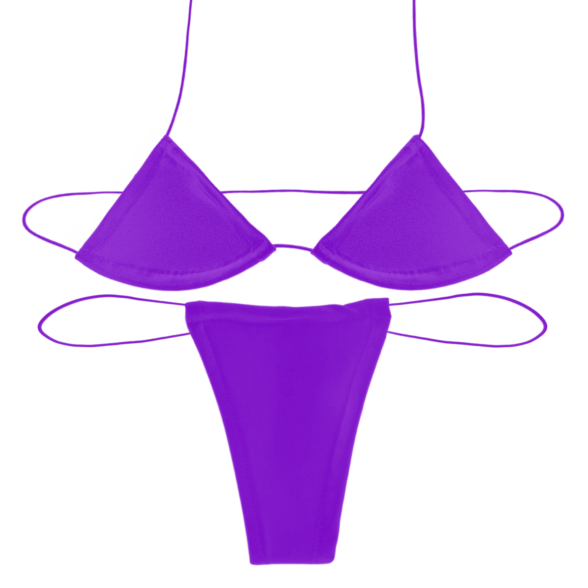 One Size. Lined bottoms. Extremely minimal coverage. Elastic cord straps are each approximately 26 inches and stretch to 55 inches. Fabric pieces are 3.75-4 inches at their widest.